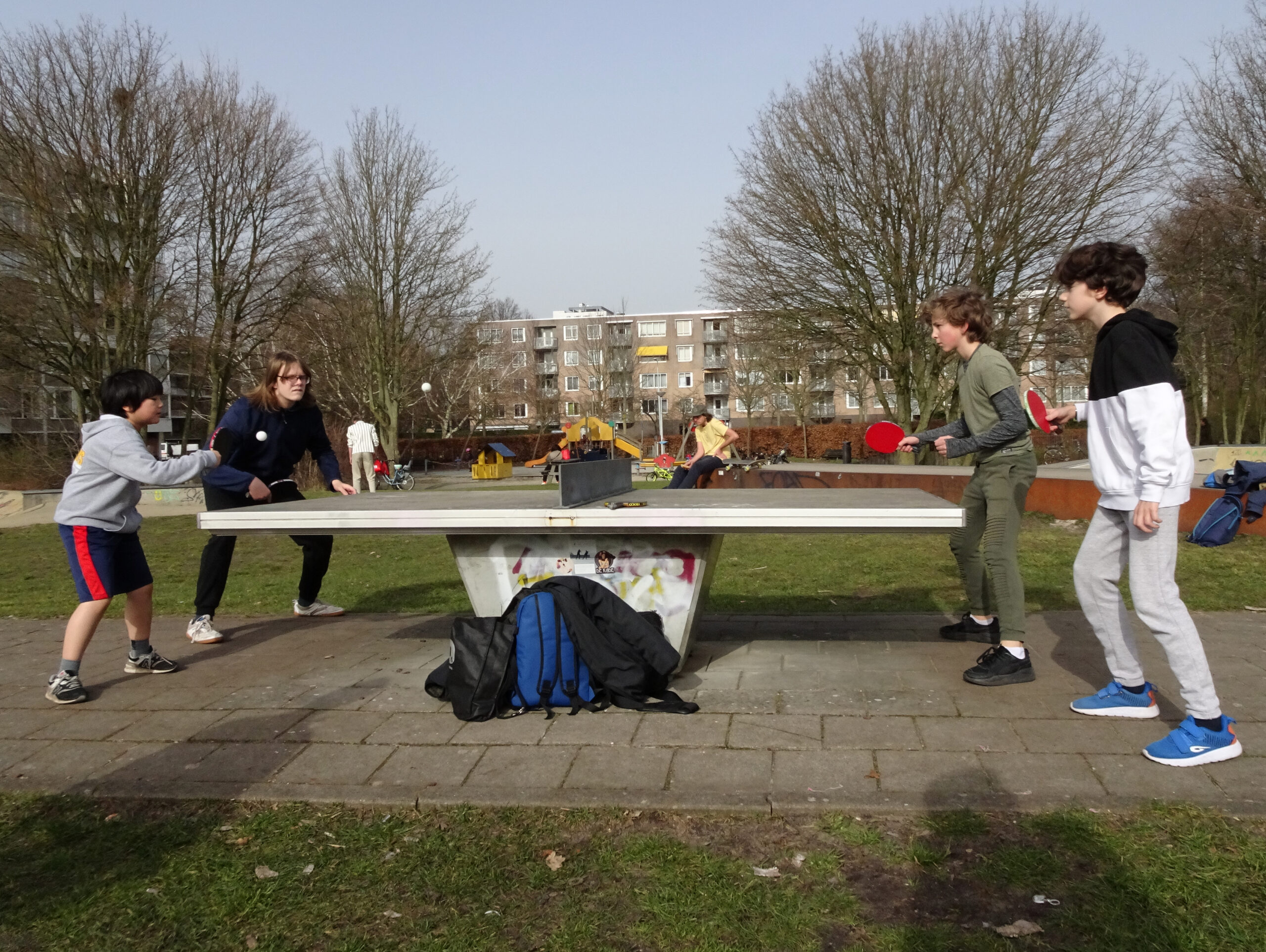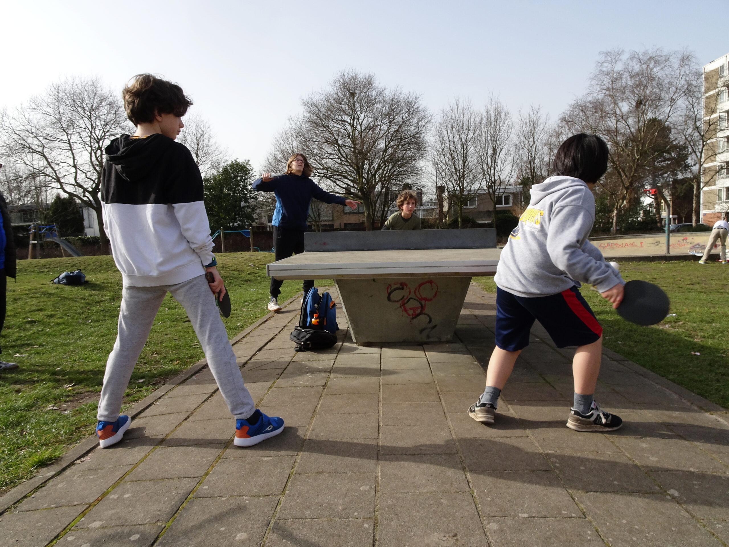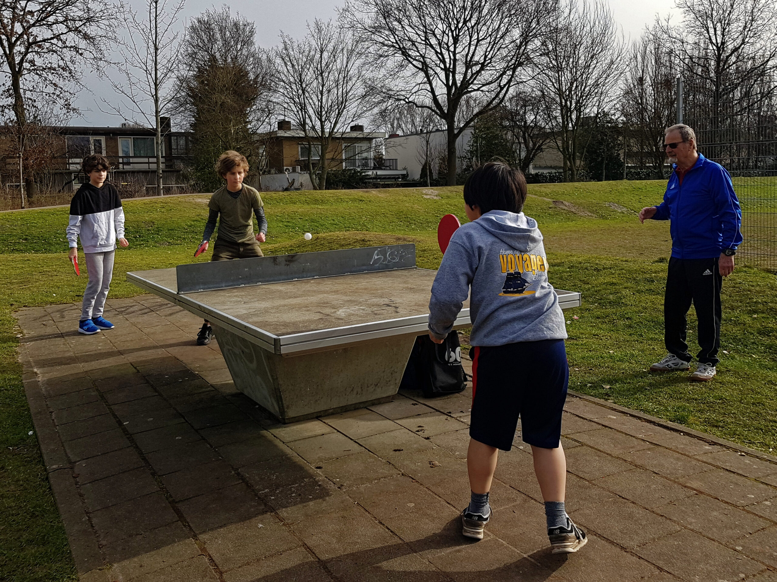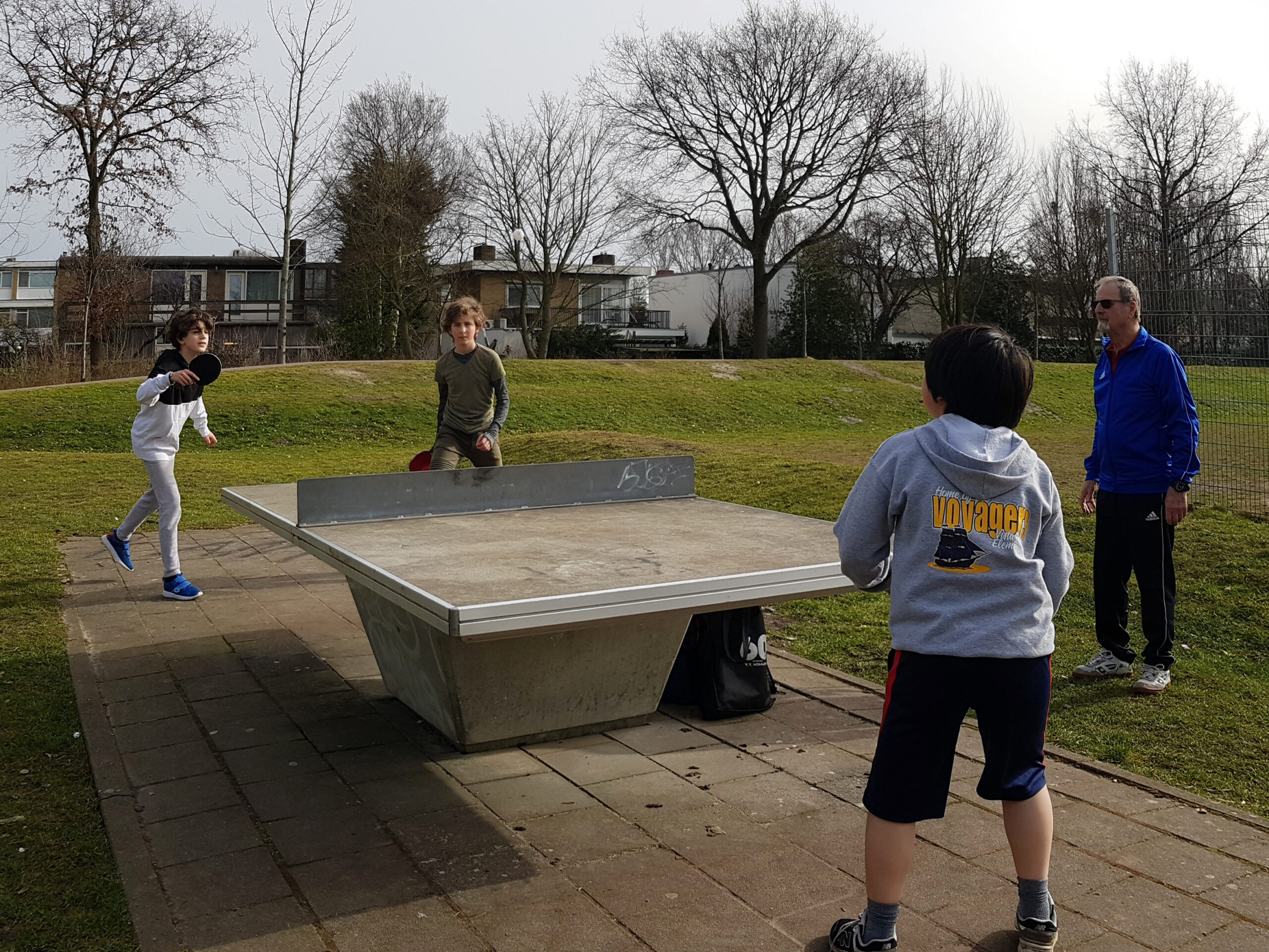 Ook onze jeugd speelt inmiddels lekker buiten, onder begeleiding van jeugdtrainer Henk! Af en toe even de bal vasthouden vanwege de wind, maar desalniettemin een leuke manier om met tafeltennis bezig te blijven! We moeten helaas nog even wachten tot we onze eigen zaal weer in mogen, maar in de tussentijd is dit ook een leuke oplossing, zeker met het mooie weer van de afgelopen week!